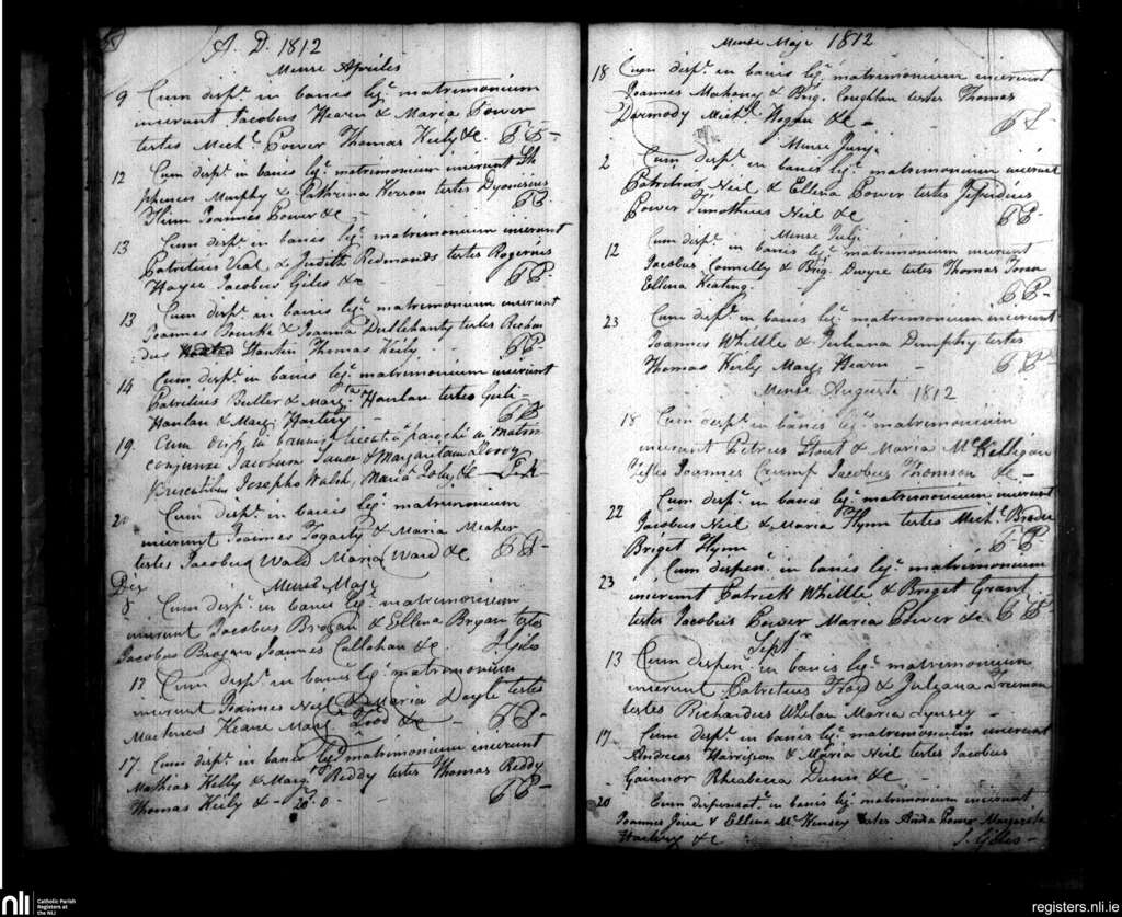 Ballybricken, Waterford city; County of Waterford; Diocese of Waterford and Lismore. Marriages, Apr. 1812 to Sep. 1812