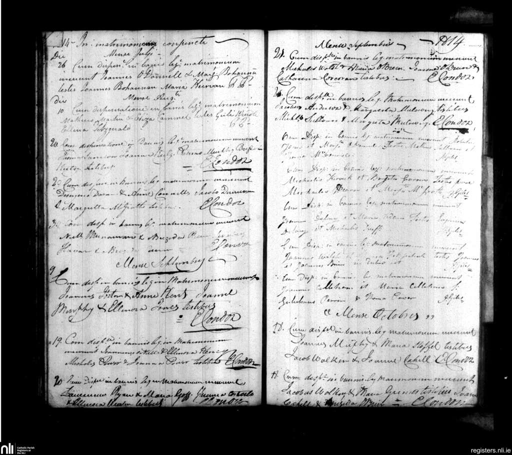 Ballybricken, Waterford city; County of Waterford; Diocese of Waterford and Lismore. Marriages, July 1814 to Oct. 1814