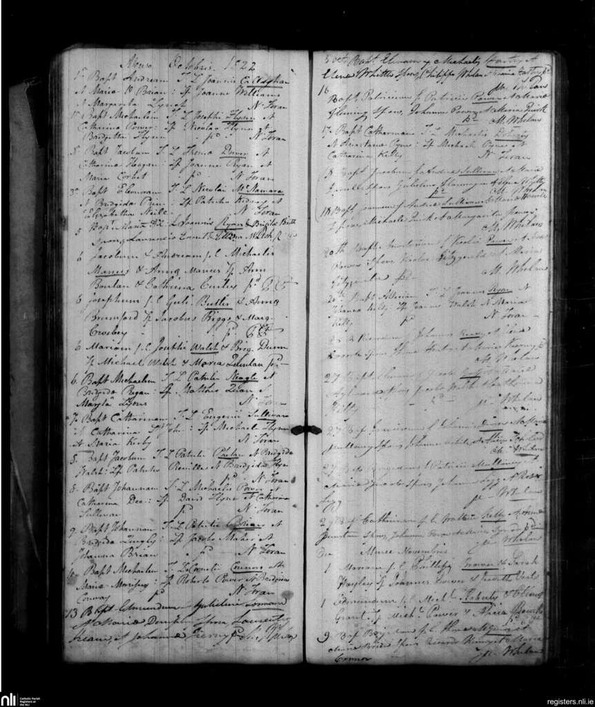 Ballybricken, Waterford city; County of Waterford; Diocese of Waterford and Lismore. Baptisms, Oct. 1825 to Nov. 1825