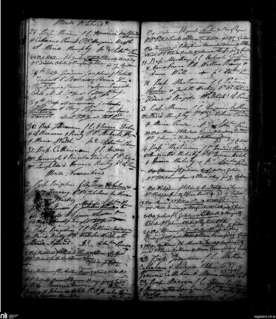 Ballybricken, Waterford city; County of Waterford; Diocese of Waterford and Lismore. Baptisms, Oct. 1831 to Nov. 1831