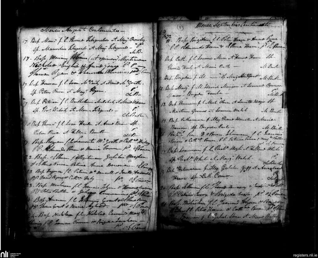 Ballybricken, Waterford city; County of Waterford; Diocese of Waterford and Lismore. Baptisms, Aug. 1832 to Sep. 1832