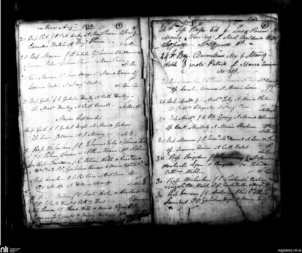 Ballybricken, Waterford city; County of Waterford; Diocese of Waterford and Lismore. Baptisms, Aug. 1832 to Sep. 1832