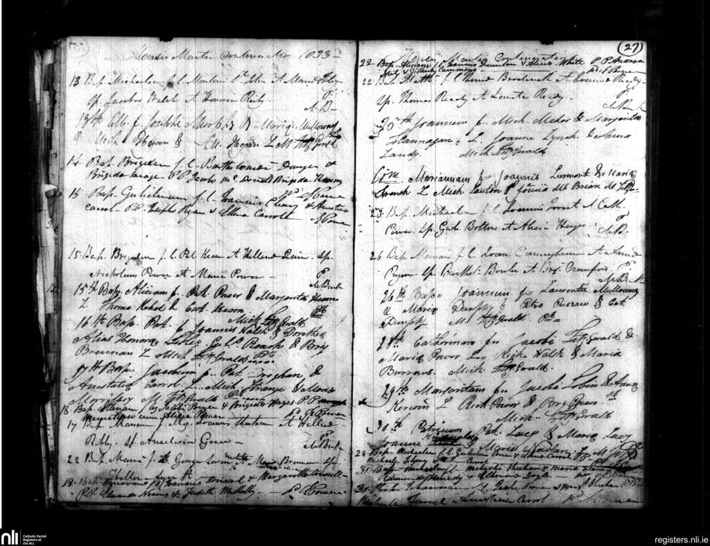 Ballybricken, Waterford city; County of Waterford; Diocese of Waterford and Lismore. Baptisms, Mar. 1833