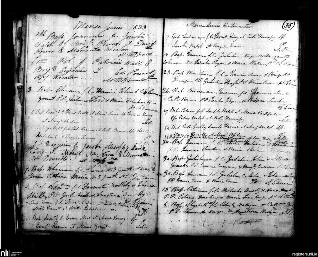 Ballybricken, Waterford city; County of Waterford; Diocese of Waterford and Lismore. Baptisms, June 1833