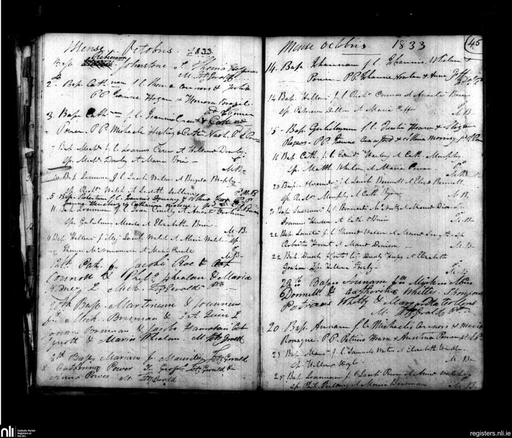 Ballybricken, Waterford city; County of Waterford; Diocese of Waterford and Lismore. Baptisms, Oct. 1833