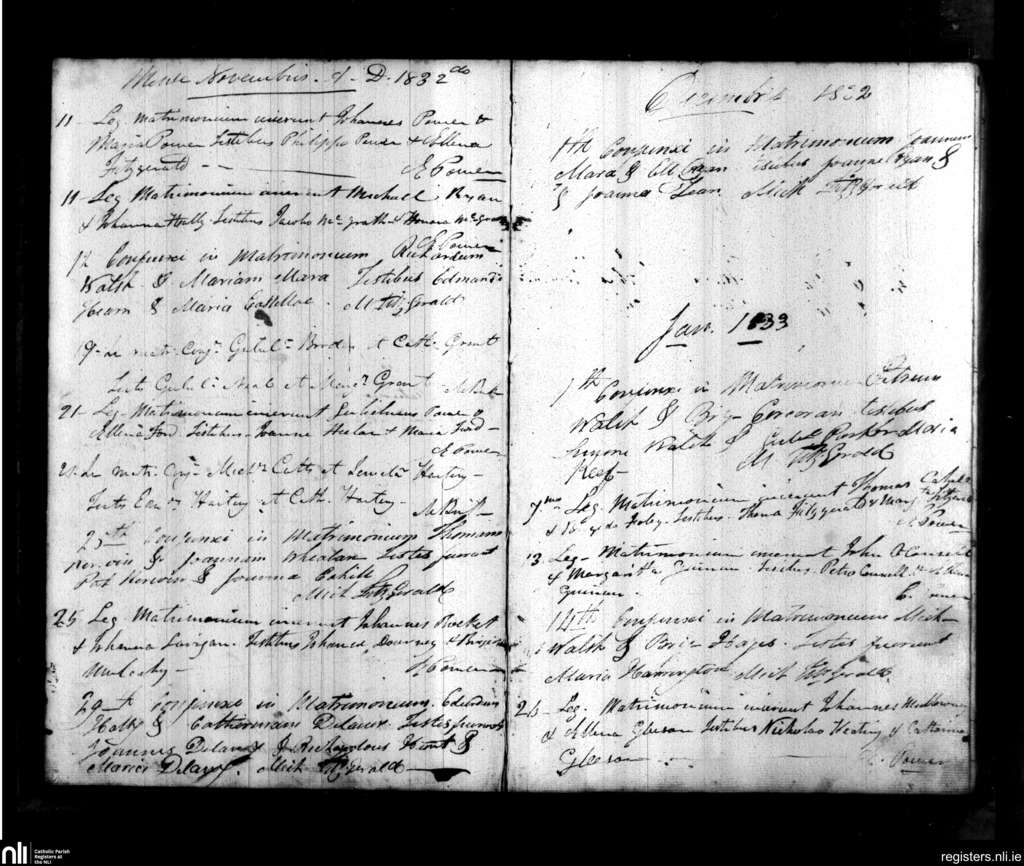Ballybricken, Waterford city; County of Waterford; Diocese of Waterford and Lismore. Marriages, Nov. 1832 to Jan. 1833