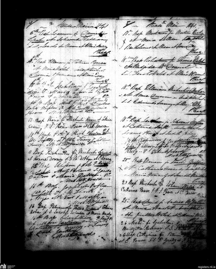 Ballybricken, Waterford city; County of Waterford; Diocese of Waterford and Lismore. Baptisms, May 1841