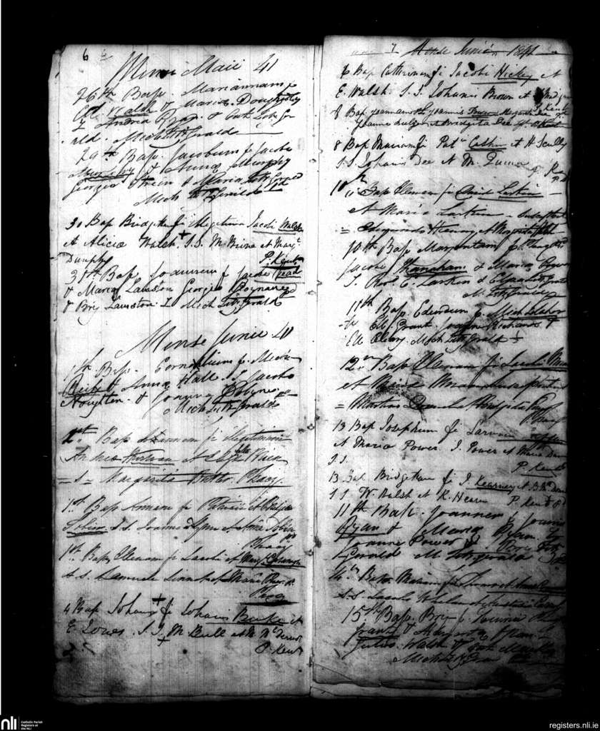 Ballybricken, Waterford city; County of Waterford; Diocese of Waterford and Lismore. Baptisms, May 1841 to June 1841