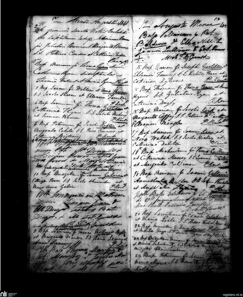 Ballybricken, Waterford city; County of Waterford; Diocese of Waterford and Lismore. Baptisms, Aug. 1841