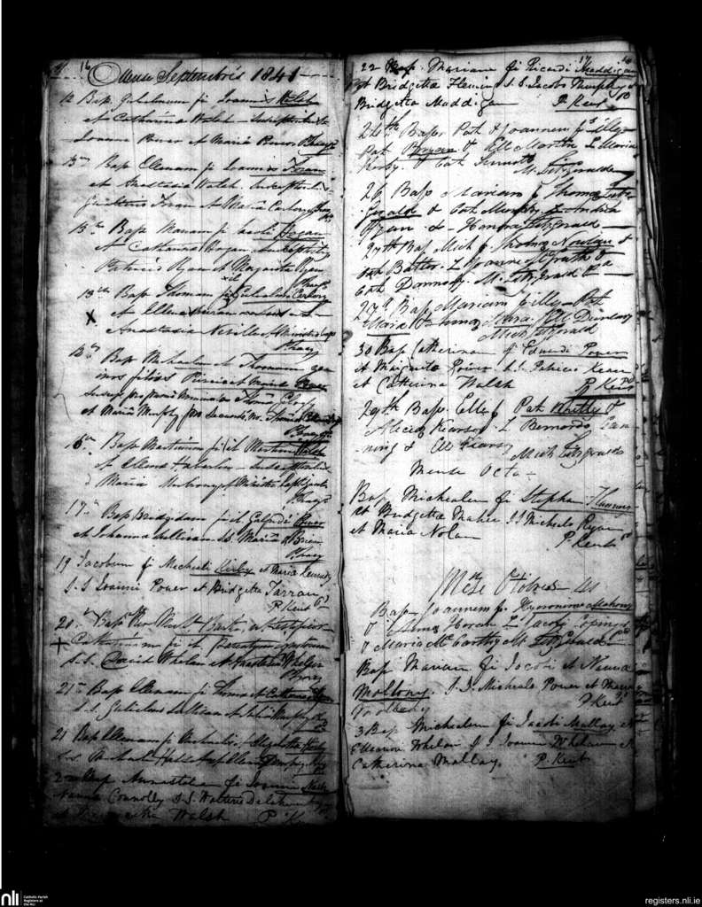 Ballybricken, Waterford city; County of Waterford; Diocese of Waterford and Lismore. Baptisms, Sep. 1841 to Oct. 1841