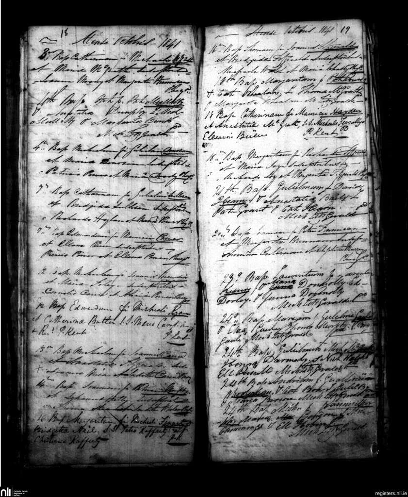 Ballybricken, Waterford city; County of Waterford; Diocese of Waterford and Lismore. Baptisms, Oct. 1841