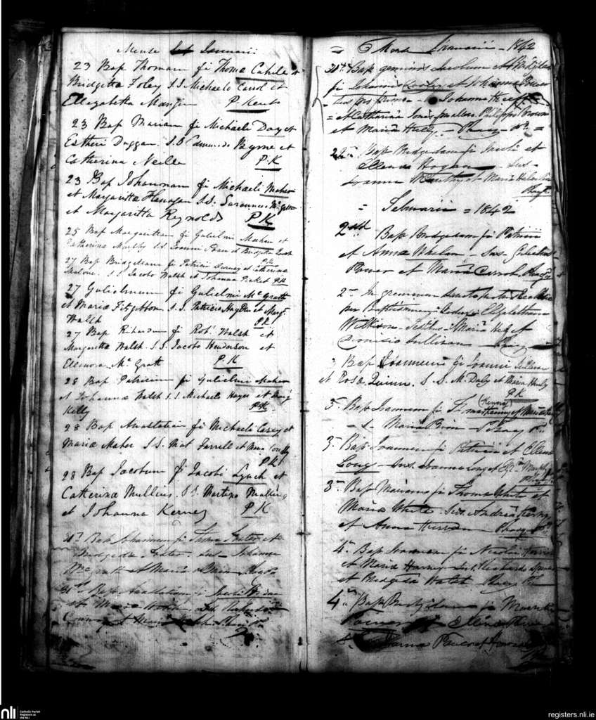 Ballybricken, Waterford city; County of Waterford; Diocese of Waterford and Lismore. Baptisms, Jan. 1842 to Feb. 1842