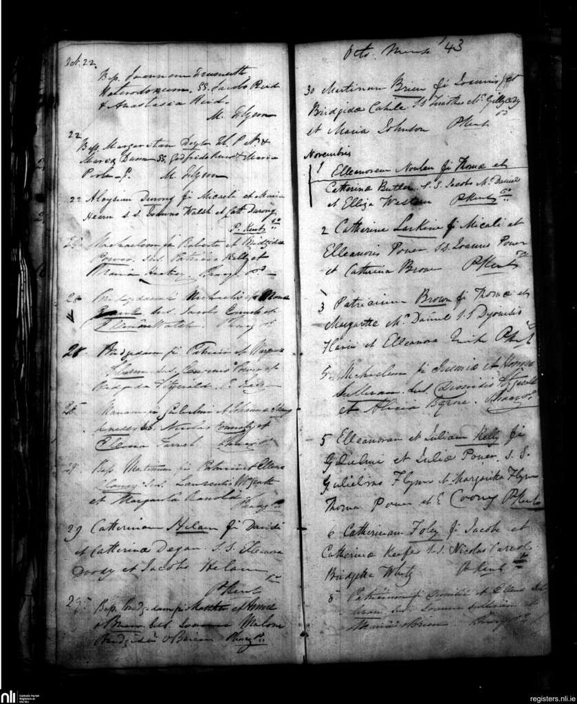 Ballybricken, Waterford city; County of Waterford; Diocese of Waterford and Lismore. Baptisms, Oct. 1843 to Nov. 1843