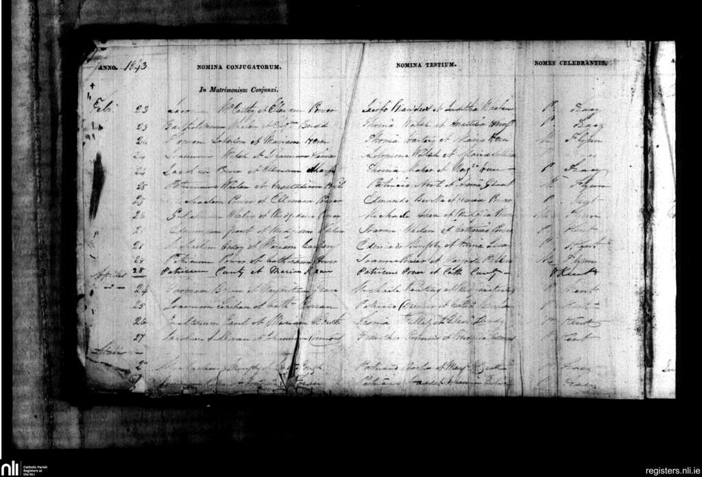 Ballybricken, Waterford city; County of Waterford; Diocese of Waterford and Lismore. Marriages, Feb. 1843 to Apr. 1843