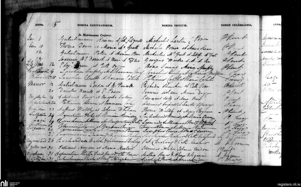 Ballybricken, Waterford city; County of Waterford; Diocese of Waterford and Lismore. Marriages, Jan. 1845
