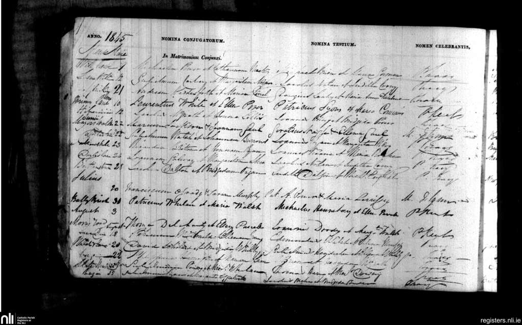 Ballybricken, Waterford city; County of Waterford; Diocese of Waterford and Lismore. Marriages, May 1845 to Aug. 1845