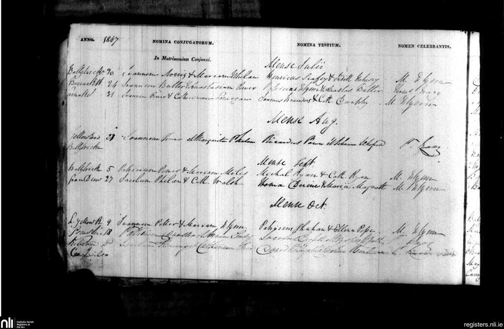 Ballybricken, Waterford city; County of Waterford; Diocese of Waterford and Lismore. Marriages, July 1847 to Oct. 1847