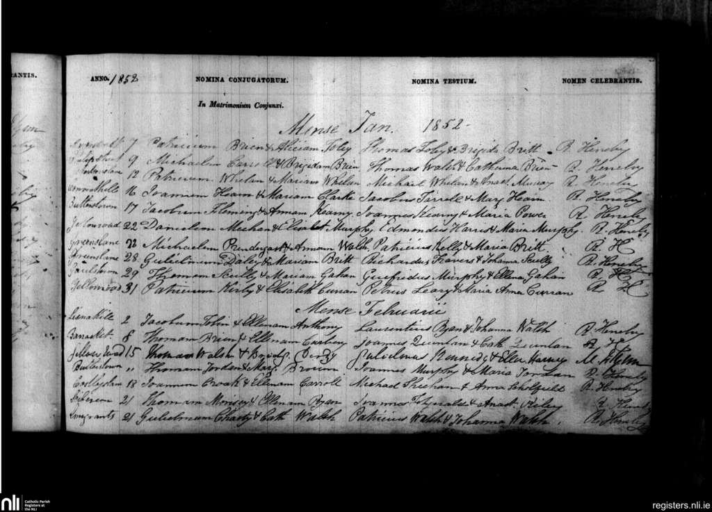 Ballybricken, Waterford city; County of Waterford; Diocese of Waterford and Lismore. Marriages, Jan. 1852 to Feb. 1852