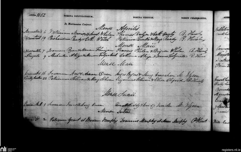 Ballybricken, Waterford city; County of Waterford; Diocese of Waterford and Lismore. Marriages, Apr. 1852 to July 1852