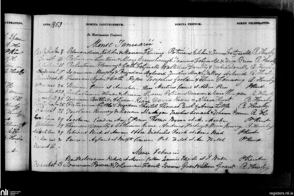 Ballybricken, Waterford city; County of Waterford; Diocese of Waterford and Lismore. Marriages, Jan. 1853 to Feb. 1853