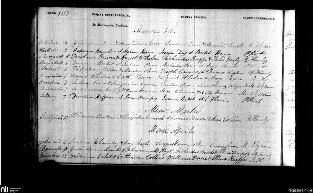 Ballybricken, Waterford city; County of Waterford; Diocese of Waterford and Lismore. Marriages, Feb. 1853 to Apr. 1853