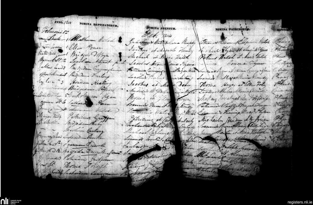 Ballybricken, Waterford city; County of Waterford; Diocese of Waterford and Lismore. Baptisms, Feb. 1844