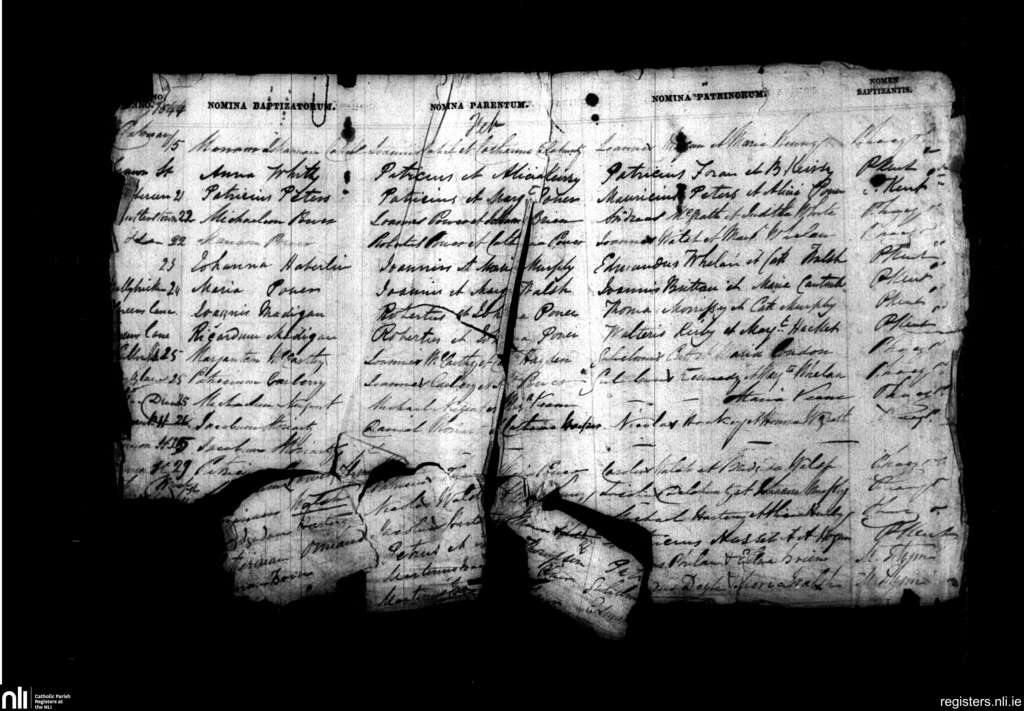 Ballybricken, Waterford city; County of Waterford; Diocese of Waterford and Lismore. Baptisms, Feb. 1844
