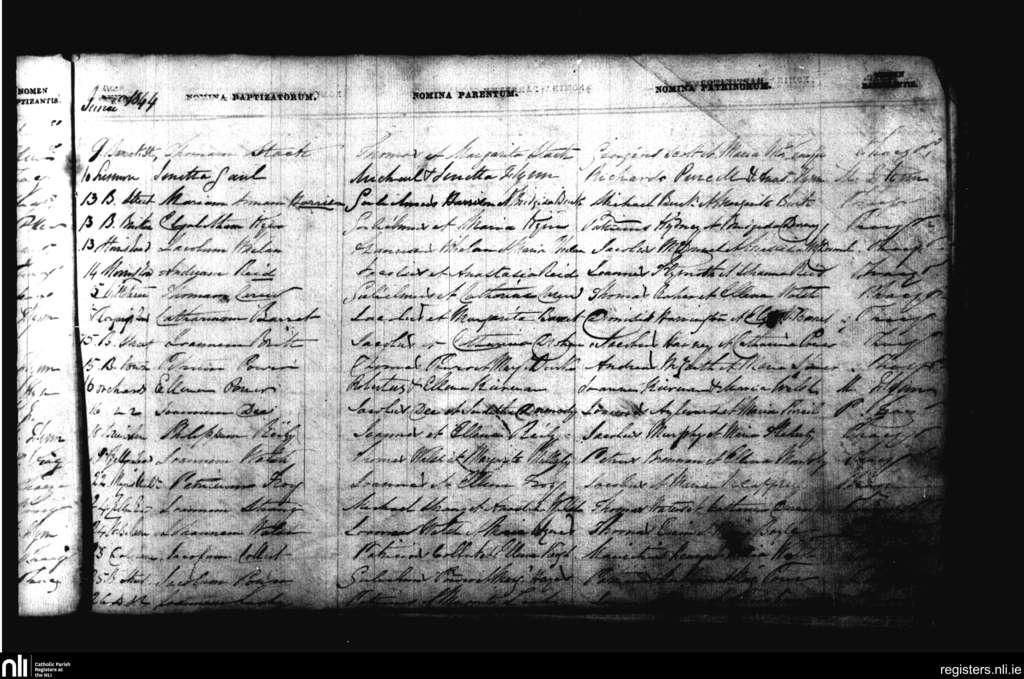 Ballybricken, Waterford city; County of Waterford; Diocese of Waterford and Lismore. Baptisms, June 1844