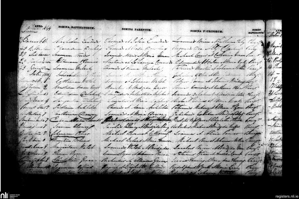 Ballybricken, Waterford city; County of Waterford; Diocese of Waterford and Lismore. Baptisms, June 1844 to July 1844