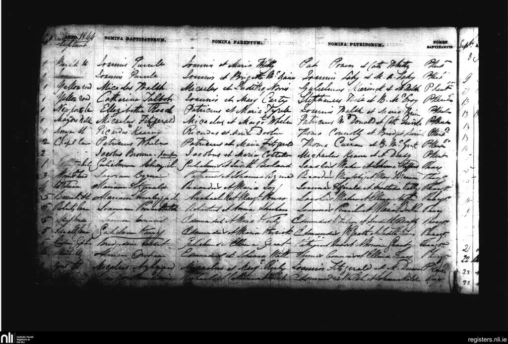 Ballybricken, Waterford city; County of Waterford; Diocese of Waterford and Lismore. Baptisms, Sep. 1844