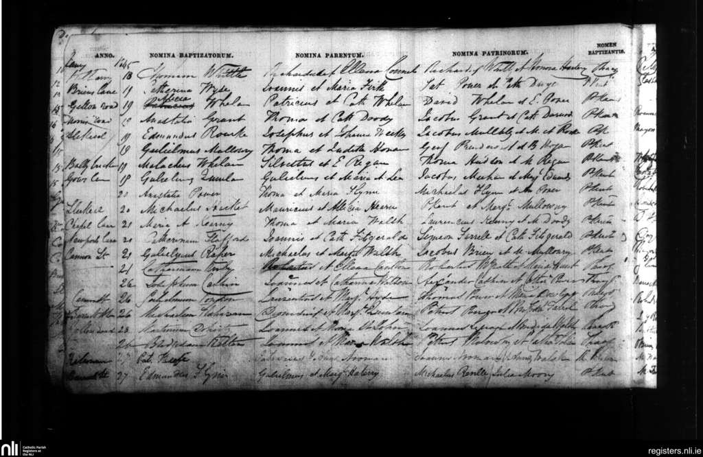 Ballybricken, Waterford city; County of Waterford; Diocese of Waterford and Lismore. Baptisms, Jan. 1845