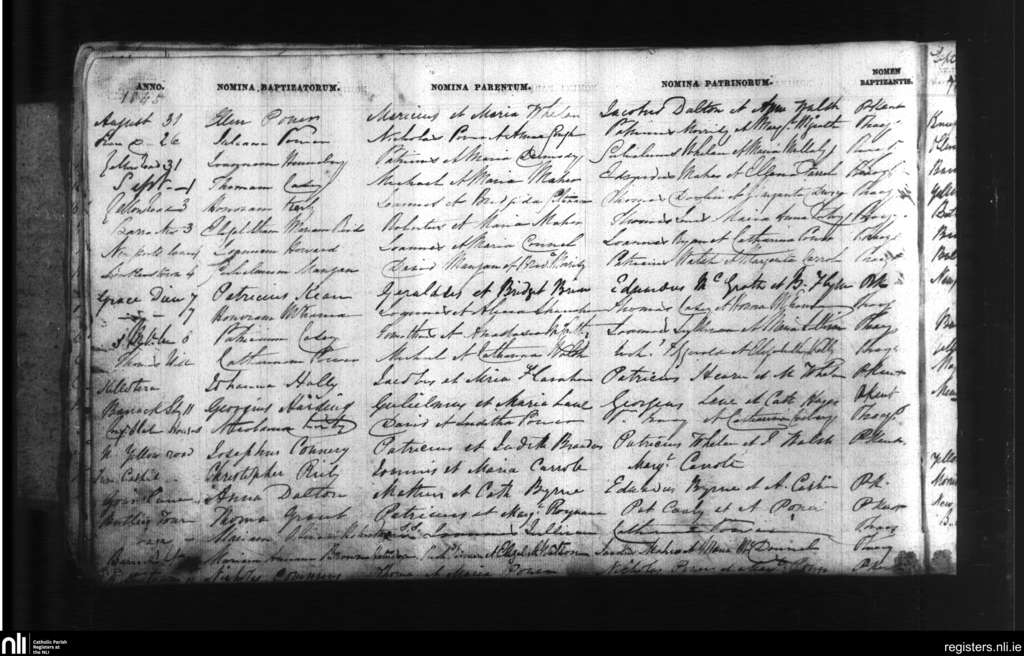 Ballybricken, Waterford city; County of Waterford; Diocese of Waterford and Lismore. Baptisms, Aug. 1845 to Sep. 1845
