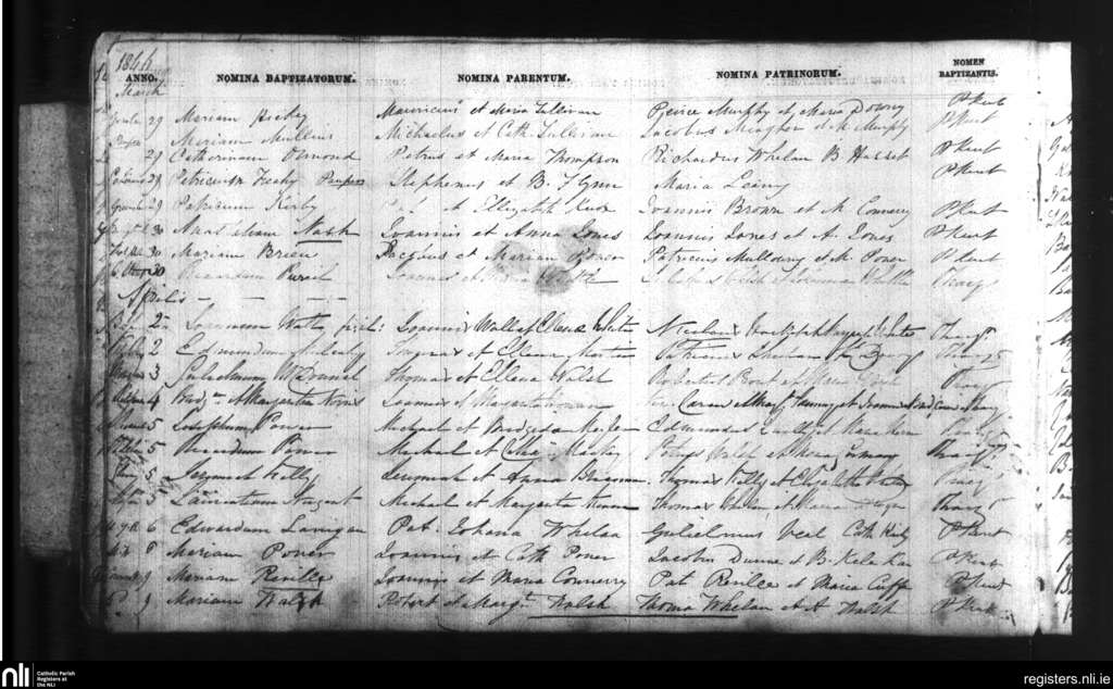 Ballybricken, Waterford city; County of Waterford; Diocese of Waterford and Lismore. Baptisms, Mar. 1846 to Apr. 1846
