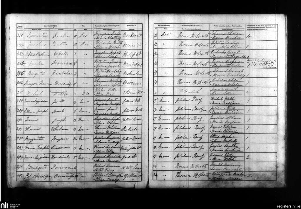Ballybricken, Waterford city; County of Waterford; Diocese of Waterford and Lismore. Baptisms, Dec. 1875