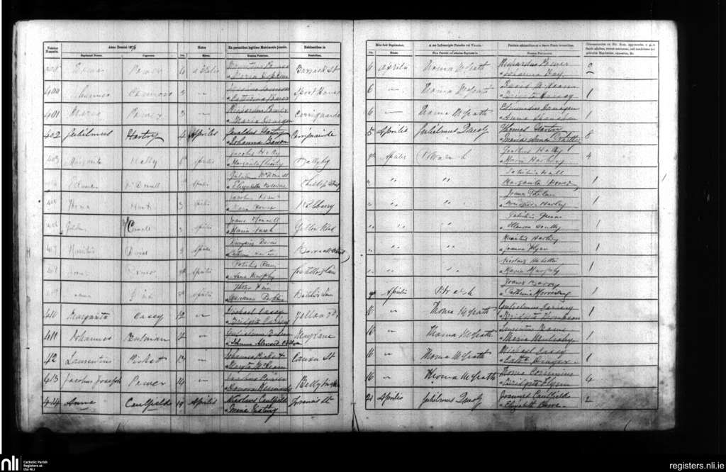 Ballybricken, Waterford city; County of Waterford; Diocese of Waterford and Lismore. Baptisms, Apr. 1876