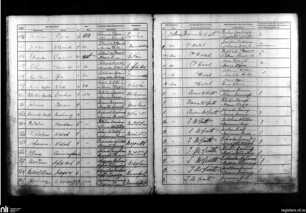 Ballybricken, Waterford city; County of Waterford; Diocese of Waterford and Lismore. Baptisms, Nov. 1876