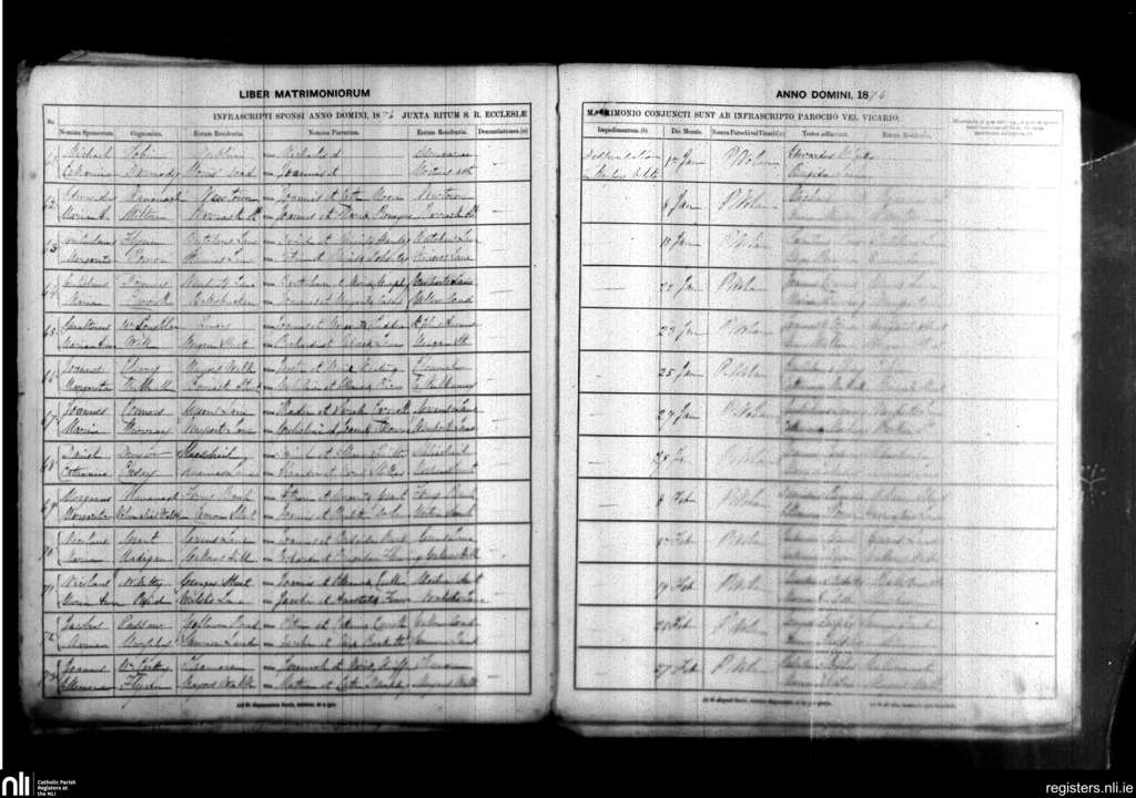 Ballybricken, Waterford city; County of Waterford; Diocese of Waterford and Lismore. Marriages, Jan. 1876 to Feb. 1876