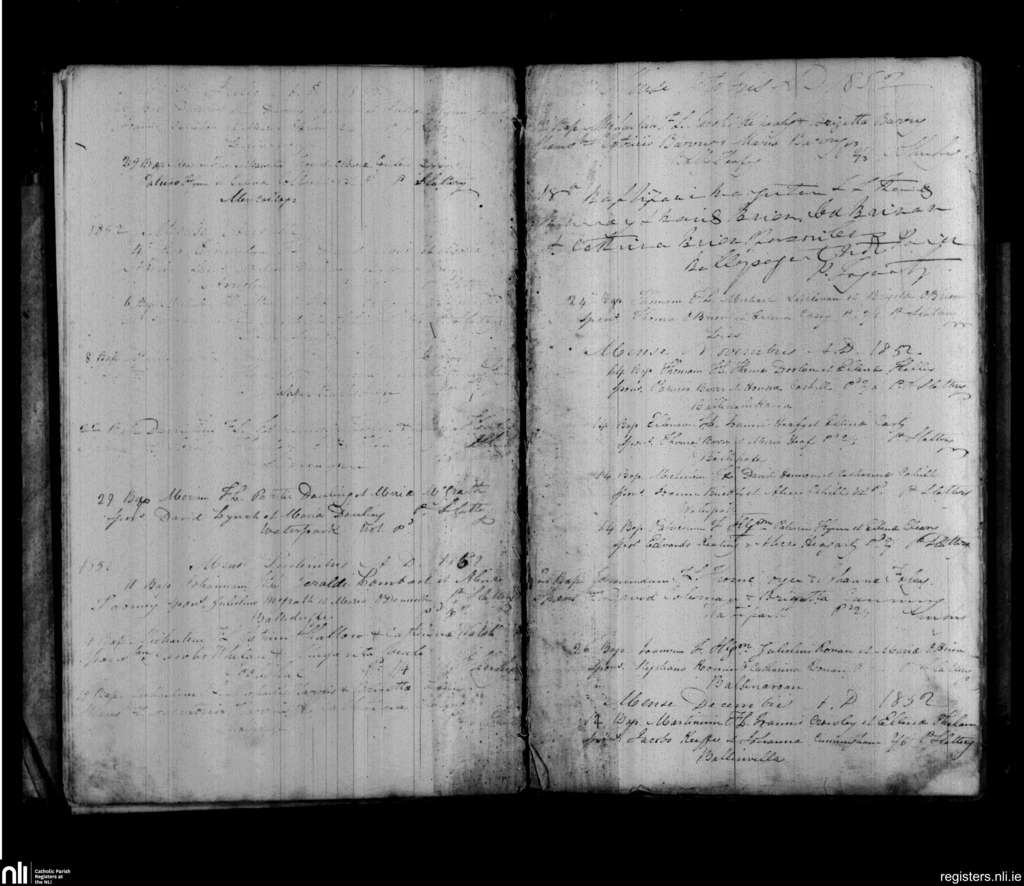 Ballyduff; County of Waterford; Diocese of Waterford and Lismore. Baptisms, July 1852 to Dec. 1852