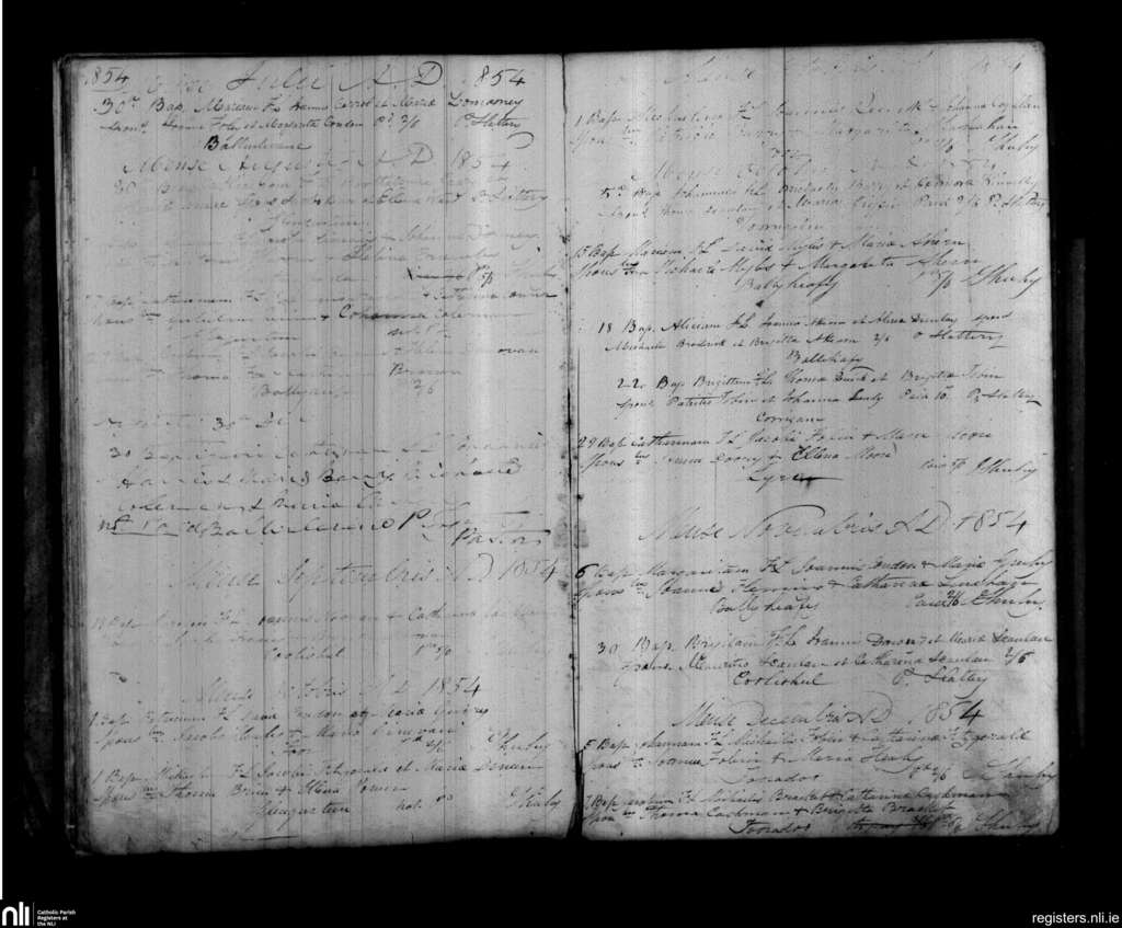 Ballyduff; County of Waterford; Diocese of Waterford and Lismore. Baptisms, July 1854 to Dec. 1854