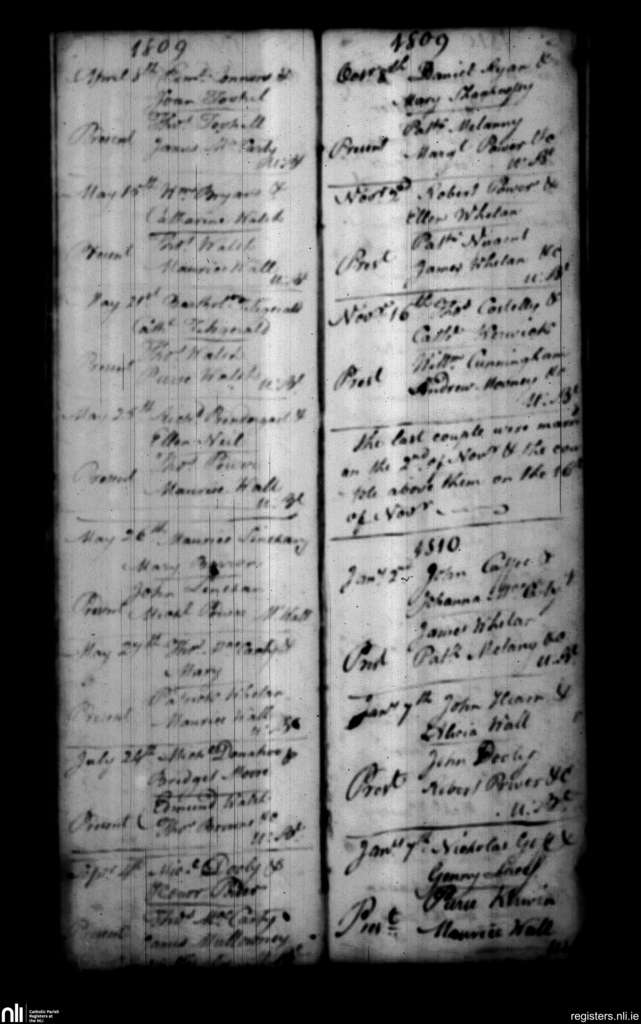 Stradbally; County of Waterford; Diocese of Waterford and Lismore. Marriages, Apr. 1809 to Jan. 1810