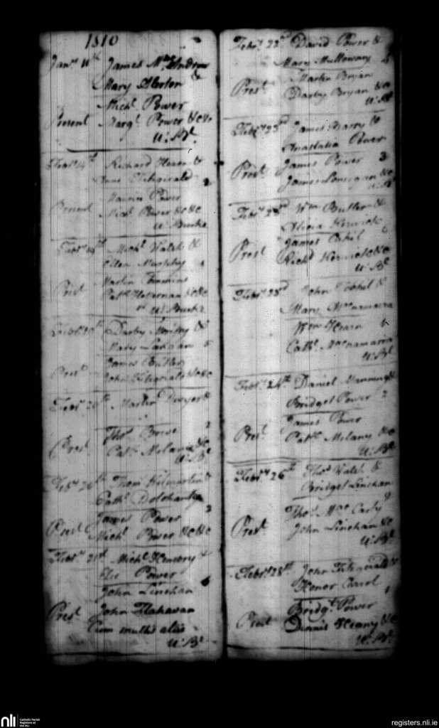 Stradbally; County of Waterford; Diocese of Waterford and Lismore. Marriages, Jan. 1810 to Feb. 1810