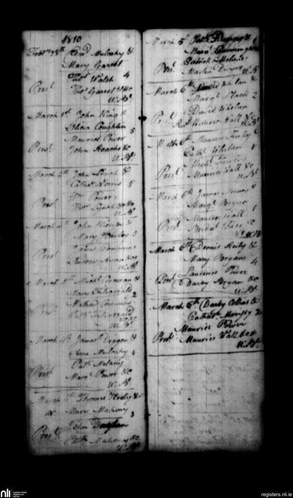 Stradbally; County of Waterford; Diocese of Waterford and Lismore. Marriages, Feb. 1810 to Mar. 1810