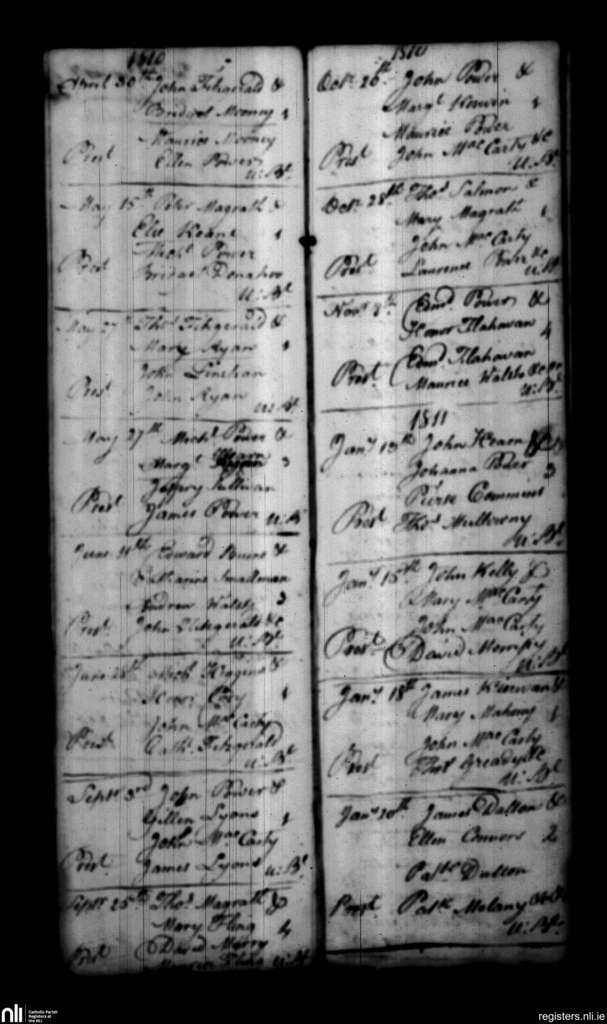 Stradbally; County of Waterford; Diocese of Waterford and Lismore. Marriages, Apr. 1810 to Jan. 1811