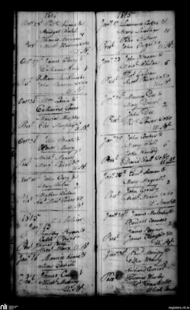 Stradbally; County of Waterford; Diocese of Waterford and Lismore. Marriages, Oct. 1814 to Jan. 1815