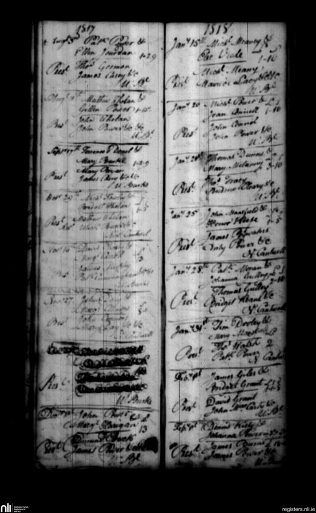 Stradbally; County of Waterford; Diocese of Waterford and Lismore. Marriages, Aug. 1817 to Feb. 1818