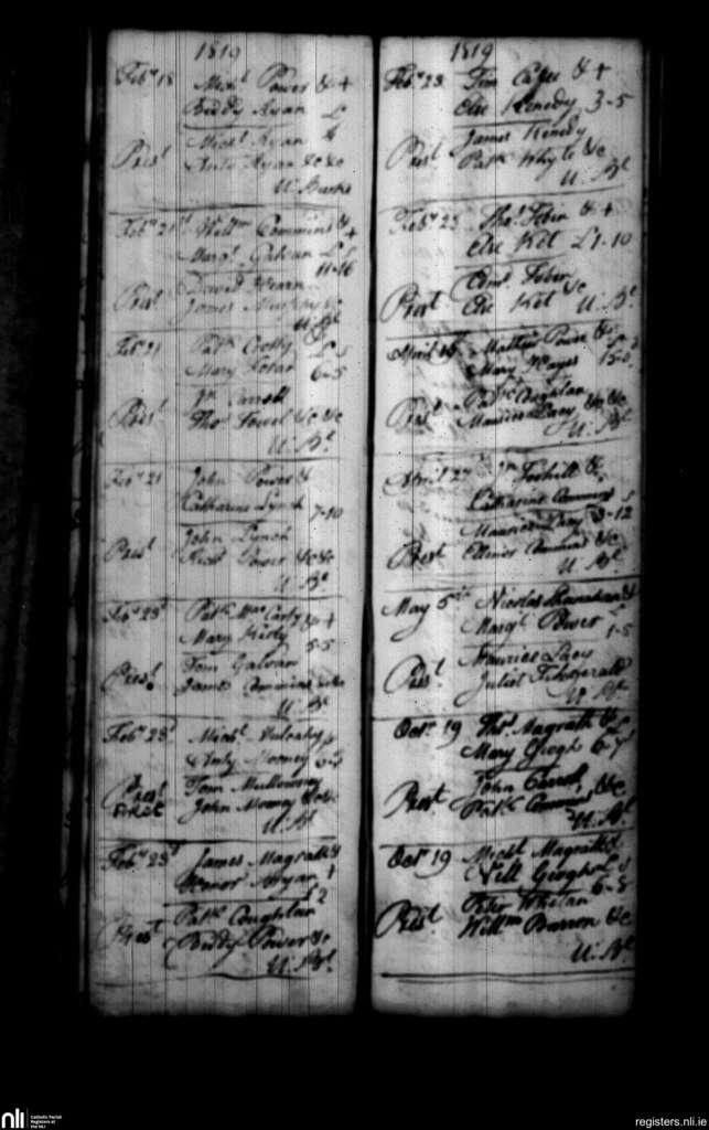Stradbally; County of Waterford; Diocese of Waterford and Lismore. Marriages, Feb. 1819 to Oct. 1819