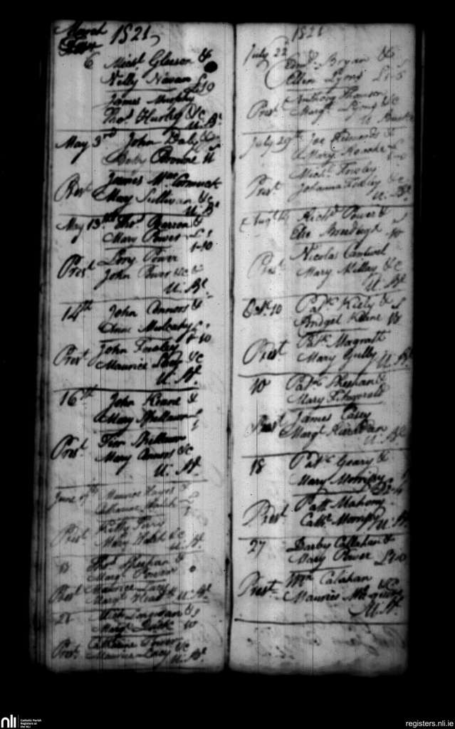 Stradbally; County of Waterford; Diocese of Waterford and Lismore. Marriages, Mar. 1821 to Oct. 1821