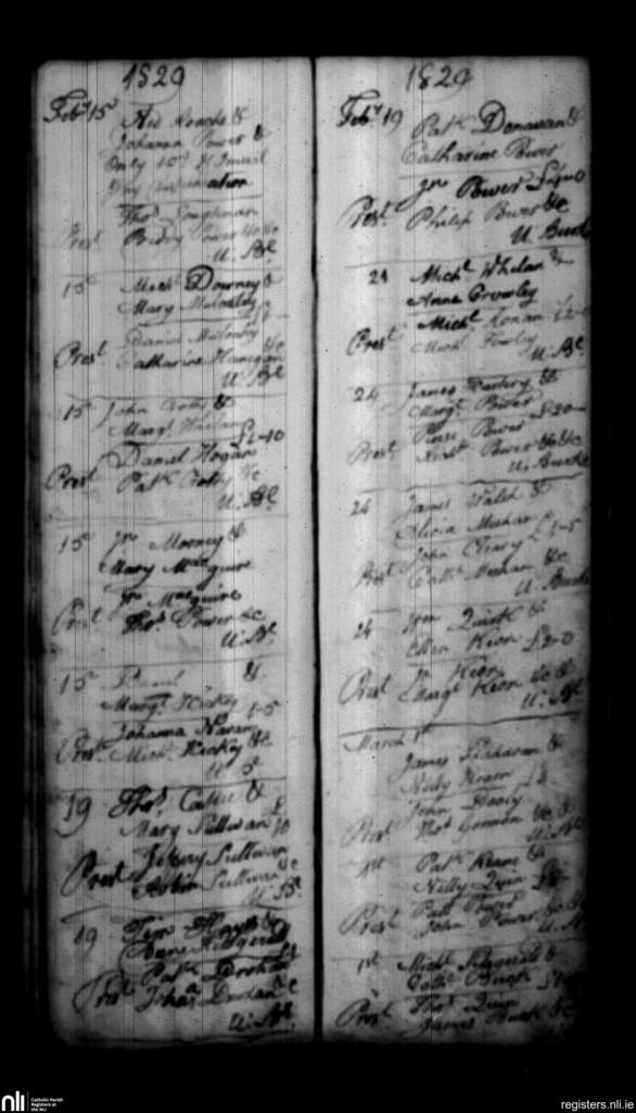 Stradbally; County of Waterford; Diocese of Waterford and Lismore. Marriages, Feb. 1829 to Mar. 1829
