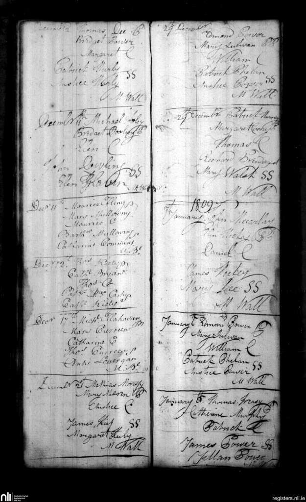 Stradbally; County of Waterford; Diocese of Waterford and Lismore. Baptisms, Dec. 1808 to Jan. 1809