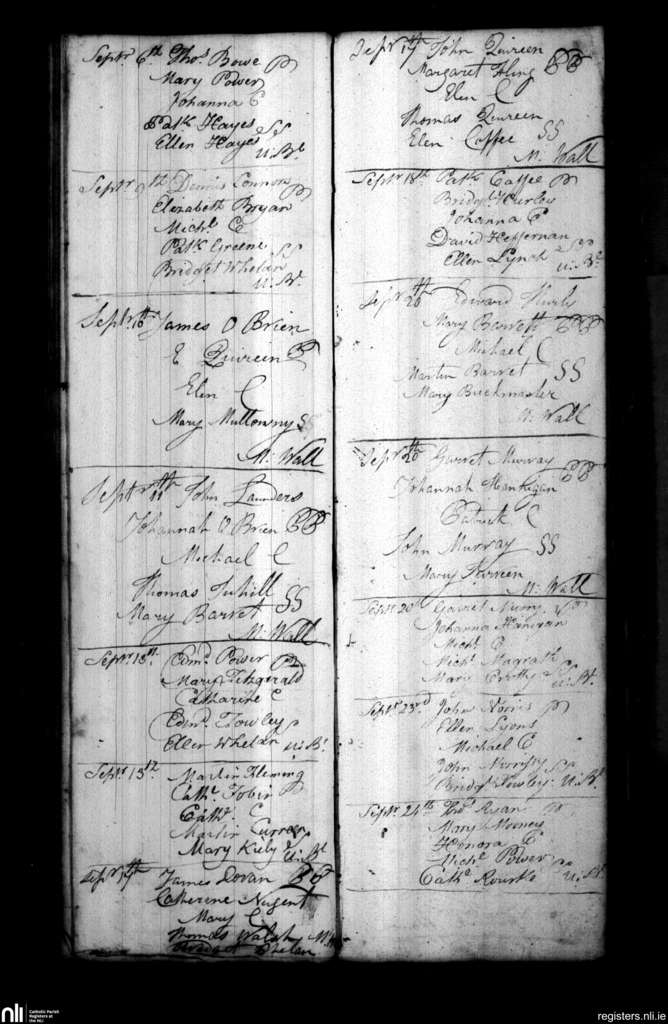 Stradbally; County of Waterford; Diocese of Waterford and Lismore. Baptisms, Sep. 1809